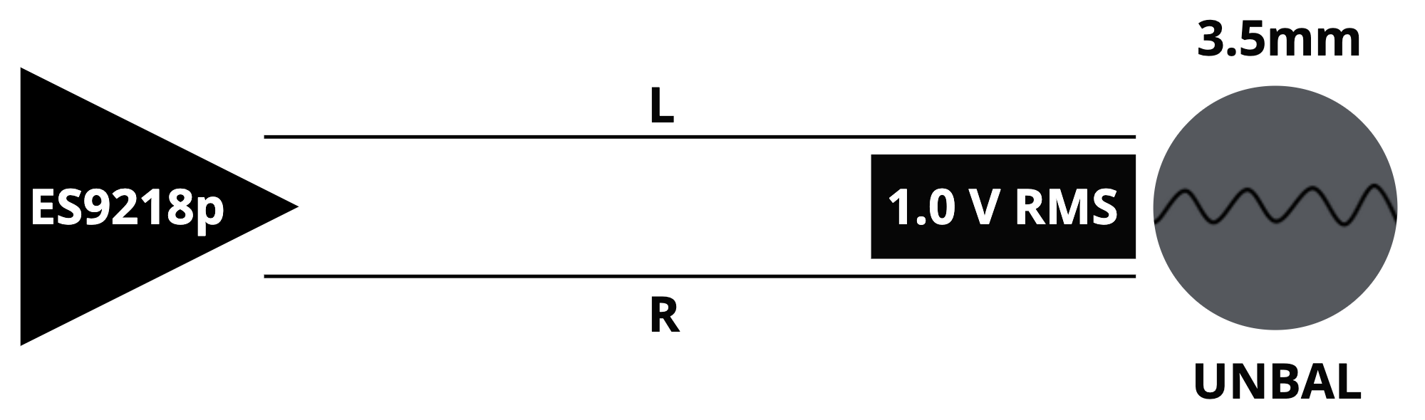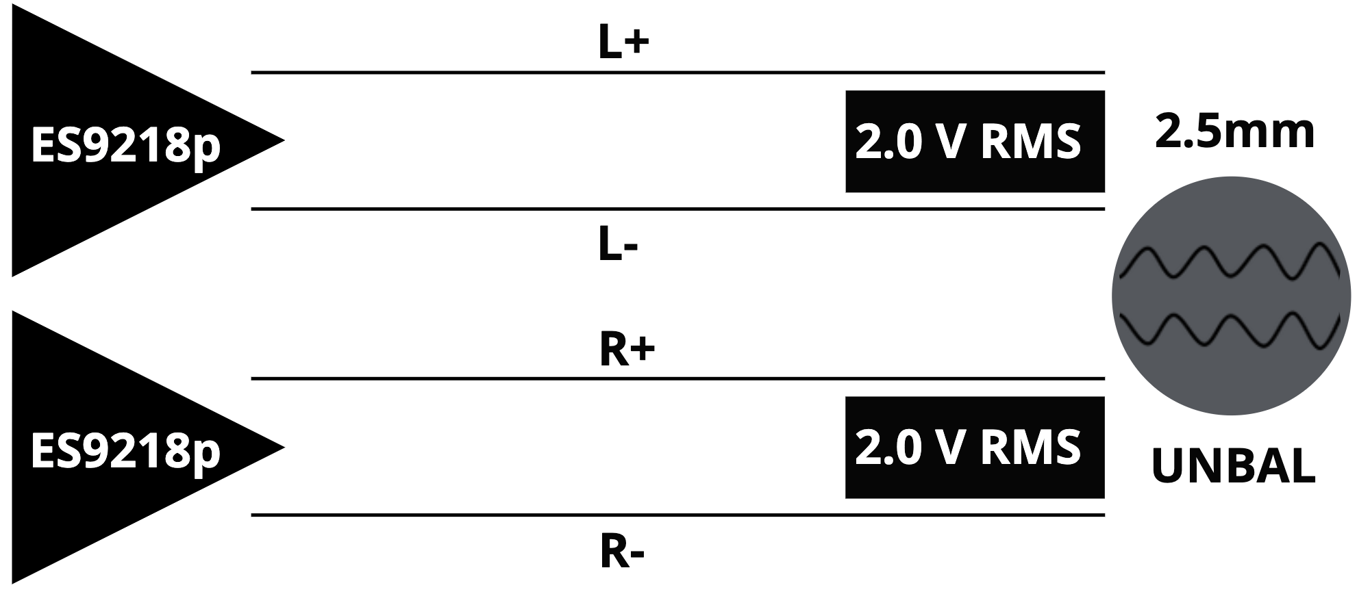 For the 2.5mm balanced output, dual ES9218P, one for each channel, deliver the doubled output voltage through the full differential direct signal path.